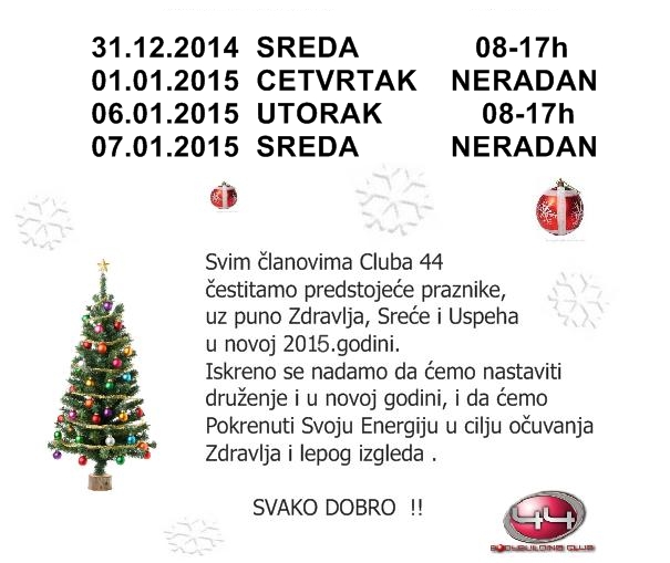Povodom obeležavanja slave Svetog Nikole, 19.12.2014g.Club 44 nece raditi taj dan. Svim našim čl...